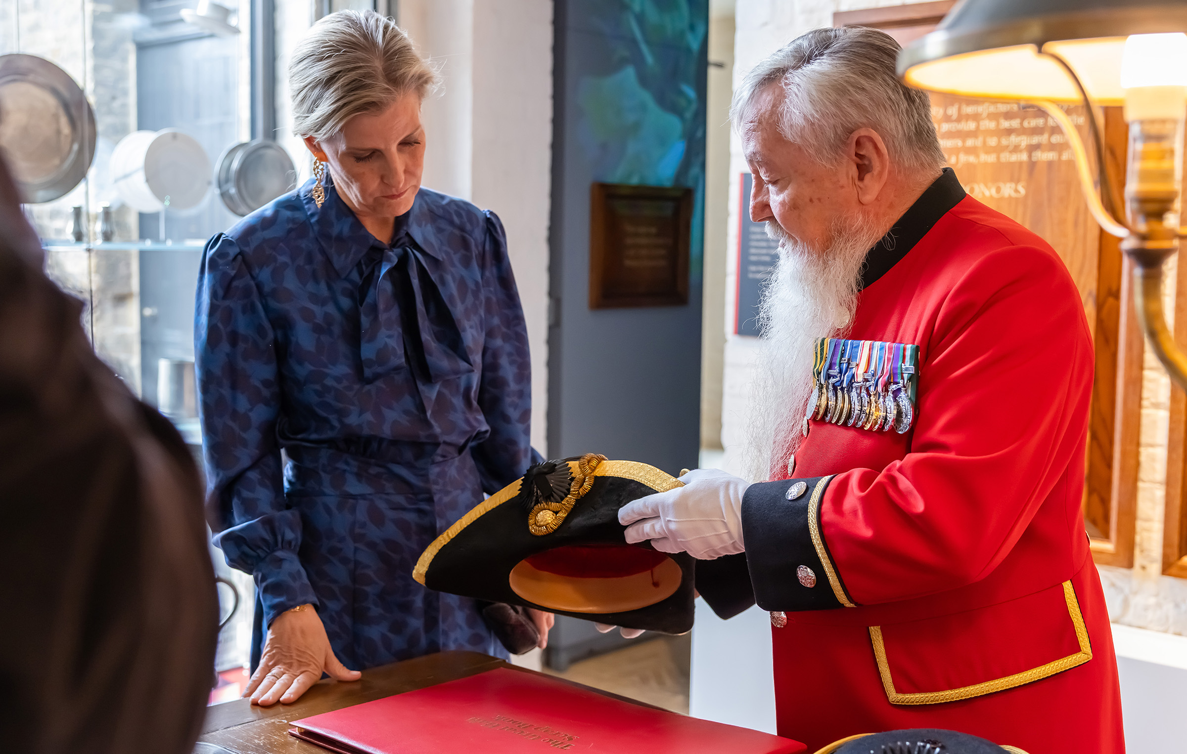 The Duchess also spent time with Chelsea Pensioners who lead public tours of the Royal Hospital, speaking with them about their role in sharing the history of the site and supporting its future through fundraising and engagement.